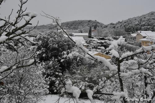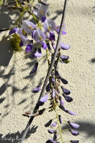 Ce matin, une première fleur de glycine encore fragile sur notre façade.